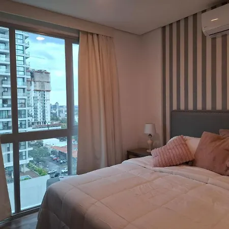 O Apartment Tower Luxury Home Palace A 100 Mts Shopping Del Sol Con Parking Amplio Assunção fica a 12 minutos a pé de Centro Comercial Paseo La Galeria. Com terraço, este apartamento também dispõe de piscina para o relaxamento final dos hóspedes.